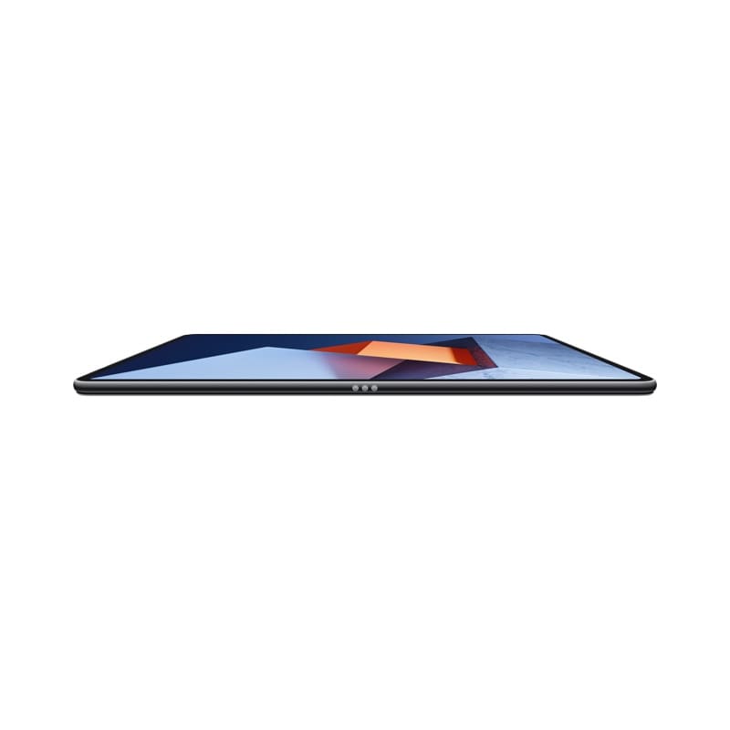 La pantalla sí deja buenas impresiones. Es una OLED con una agradable relación de 16:10, lo que la hace ver más alargada y que resulta ideal para un uso vertical como segundo monitor. El color del MateBook E es un tradicional y sobrio gris oscuro, casi negro (llamado nebula gray), que le da un aspecto muy elegante al estar desplegado. Y cuando decimos “desplegado” nos referimos a la postura por defecto del aparato: en posición horizontal, con su teclado magnético adosado y apoyado por una de las partes flexibles de la contratapa.