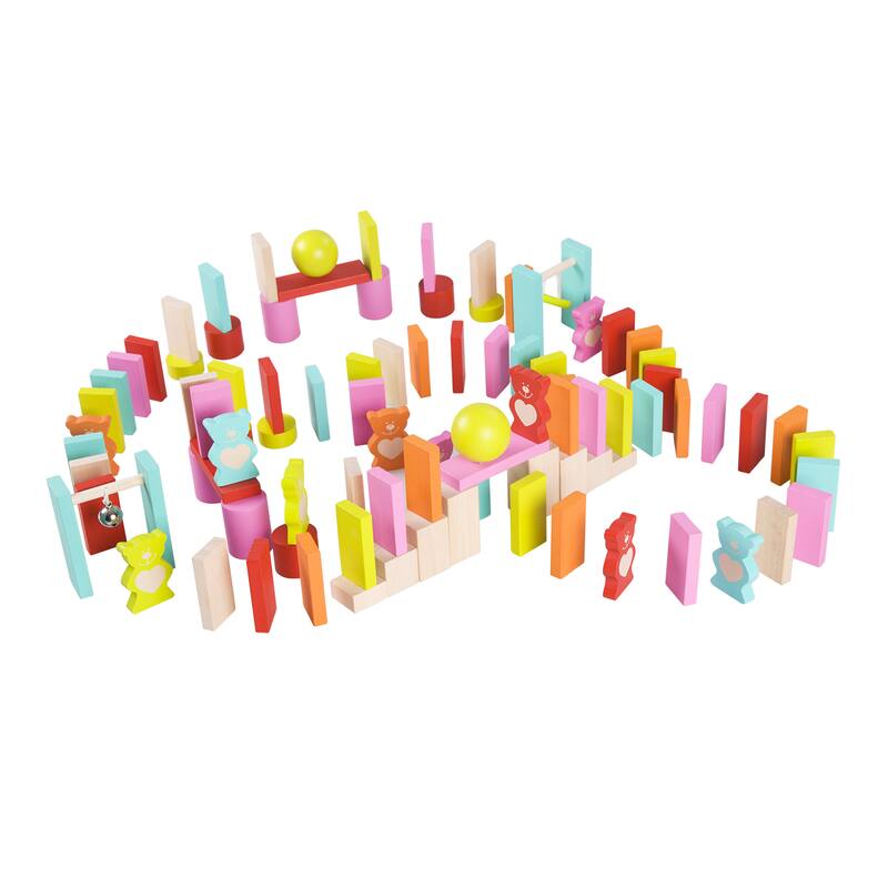 El objetivo de este dominó es ayudar al oso a enviar su mensaje de amistad. Este tipo de bloques ayuda a los niños a mejorar la capacidad de concentración, la coordinación ojo-mano y la imaginación. La construcción de un laberinto de bloques de dominó puede ser un gran desafío para los niños y el resultado lo gozan grandes y pequeños. Contiene 144 piezas de colores.