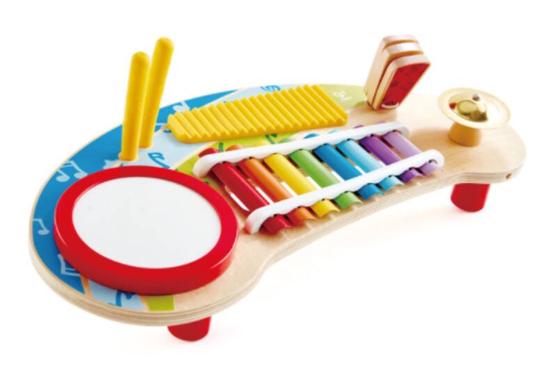 Con juguetes musicales de este tipo podrás potenciar la creatividad sonora del niño. En este vienen cinco instrumentos de percusión en uno: xilófono, tambor con bastón, un platillo, clapper y el caribeño güiro.
