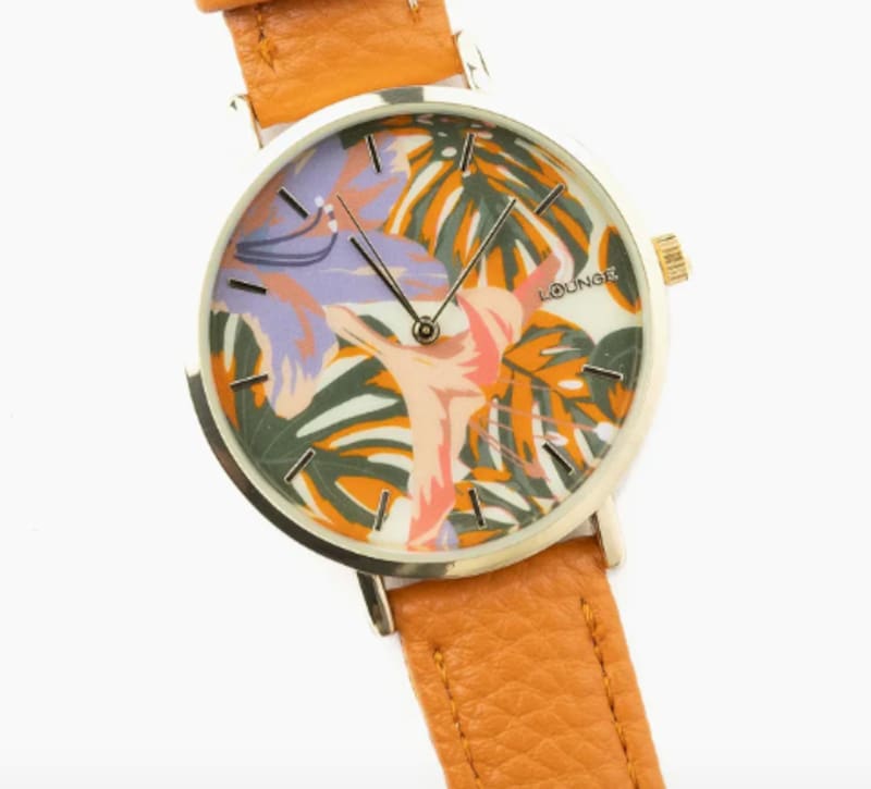 Hoy en día, el mundo puede dividirse en dos grandes grupos de personas: quienes usan reloj de muñeca y quienes miran la hora en el teléfono (o viven preguntándosela al resto). Si tu obsequiado es del primer grupo, y además es un fanático de las plantas, entonces acá tenemos el regalo perfecto: un modelo Lounge análogo y de tonos selváticos, que evoca un ánimo salvaje y botánico. Su correa tiene siete orificios.