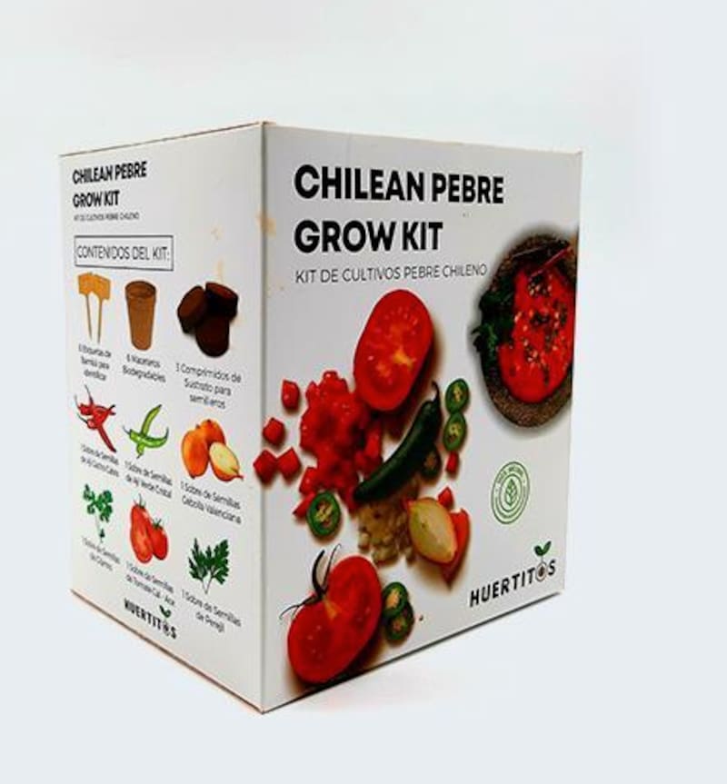 Este kit de cultivo entrega todo lo que necesitas para montar un mini huerto en casa. Pero no cualquiera: quien lo reciba, y si lo cultiva bien, tendrá en algunas semanas todo lo necesario para poder hacer pebre. Es decir, incluye semillas de ají cacho cabra, ají verde, cilantro, perejil, cebolla y tomate. Solo hay que agregarle sal y aceite. La caja viene con tres comprimidos de sustrato para almácigos, maceteros biodegradables de 6cm (99cc), marcadores de bambú para huertitos, instrucciones y recomendaciones de cultivo.