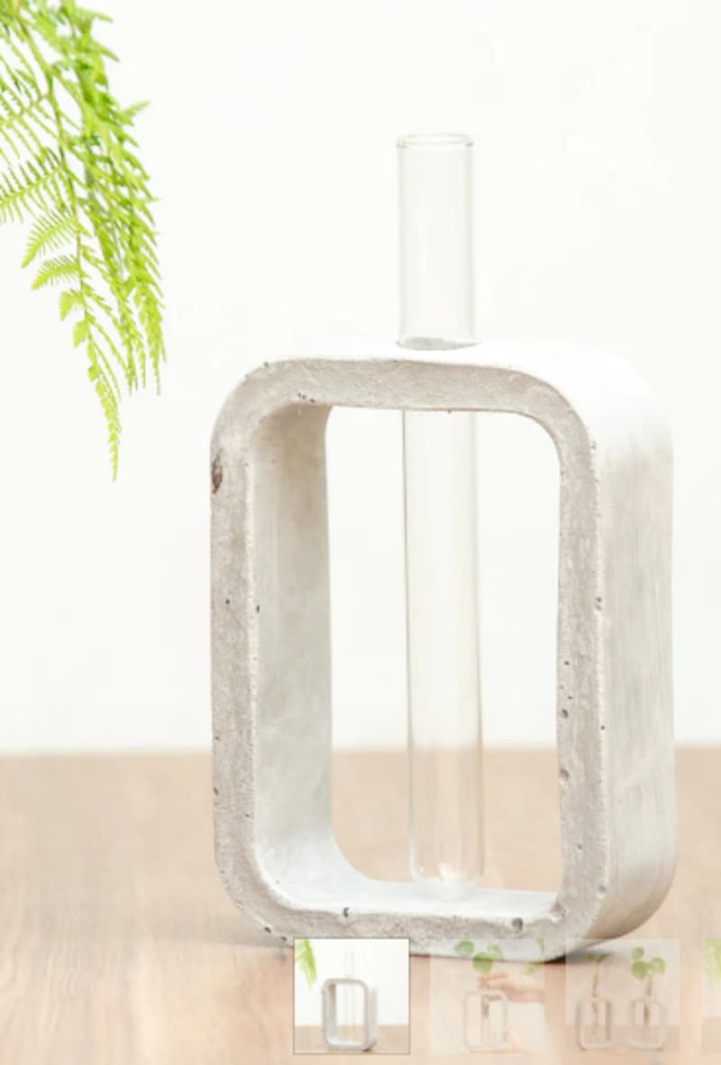 Un propagador de plantas es un regalo excelente para quienes se manejan en el arte de la reproducción de esquejes. Este en particular es de diseño minimalista: un bloque de concreto con un tubo de ensayo al interior. Esto, además de aportar de modernismo a la decoración, beneficia al esqueje cuando está echando raíz. Sus dimensiones son de 10 x 14 cm.