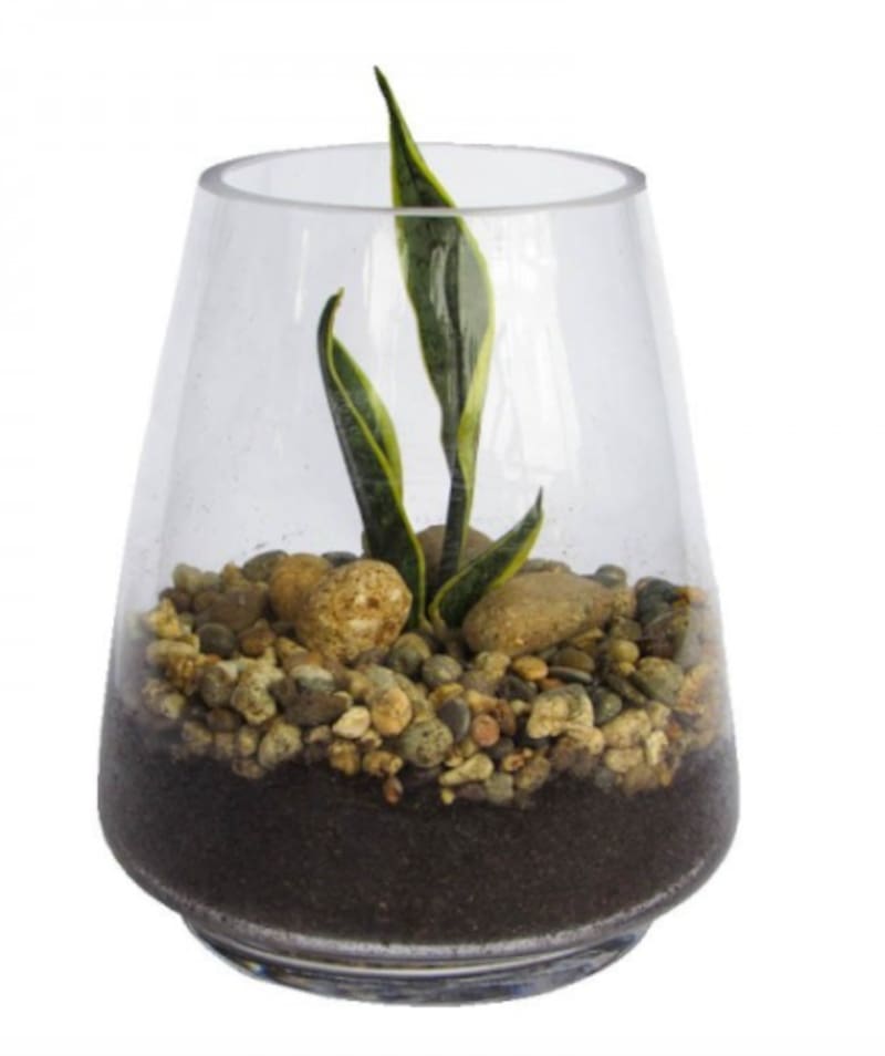 Si siempre te preguntaste cómo se vería un macetero por dentro, qué pasa en la tierra cuando llega el agua o crecen las raíces, con este terrario podrás saberlo. En ese caso con una sansevieria —antes conocida con el machista nombre de lengua de suegra— es famosa por su alta capacidad para purificar y depurar ambientes. Se adapta muy bien a lugares con poca luz natural y no necesita de mucha agua. Eso sí, hay que mantenerla en interior porque no le gusta el frío ni el sol directo. Incluye una guía con cuidados específicos.