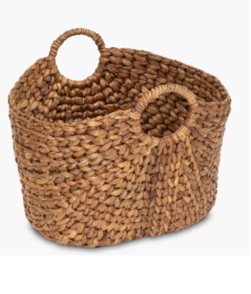 Los canastos de fibras naturales pueden ser muy útiles para los aficionados a la jardinería, ya que sirven para poner plantas cuyos maceteros no sean tan atractivos a la vista. Así, no hace falta transplantarlas para que luzcan atractivas y decentes. Sino, también pueden funcionar como centro de herramientas, accesorios e insumos de jardinería y terraza. Este está hecho con jacinto de agua, una fibra natural muy resistente y duradera. Sus medidas son de 44x43x37cm.