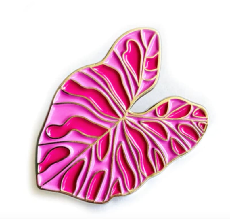 Para quienes sean fanáticas del caladium, esa hermosa planta cuyas hojas contienen intensos tonos rojos y verdes, este pin irá directo a su corazón. Es una versión ilustrada de esta linda hoja, y puede ser el toque de personalidad para tu atuendo, ya sea en chaquetas, blazer o abrigos, o también en carteras y mochilas. Sus dimensiones son de 2,5 x 3 cm.