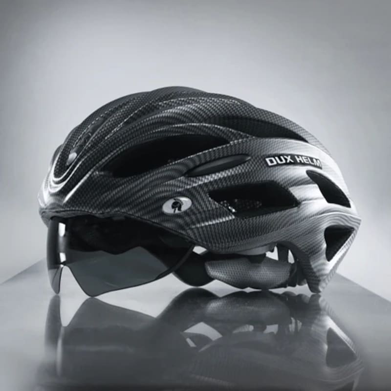 Para elegir un casco veraniego, dice Bianchi, es importante calcular “una buena mezcla entre protección y ventilación”. Para ello recomienda uno DUX Helm, cuyo diseño permite que el aire fluya por la cabeza y se pueda mantener una temperatura regulada. “Además tiene una visera integrada, para que el sol no nos afecte tan directamente, y unos lentes ahumados retráctiles”.