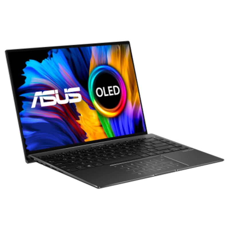 Aunque venga sólo en un color (negro), es un modelo que refleja claramente las líneas propias y clásicas de diseño de Asus, de grado militar, lo que incluye un cómodo teclado retroiluminado, lector de huellas biométrico y un amplio trackpad, que también se puede transformar en práctico teclado numérico. Pero lo que realmente destaca acá es la pantalla OLED táctil, de buenos 14″ (2880 x 1800) con validación Pantone y tasa de refresco de 90 Hz. Visualmente en un portátil, la cosa acá es de carácter premium.
