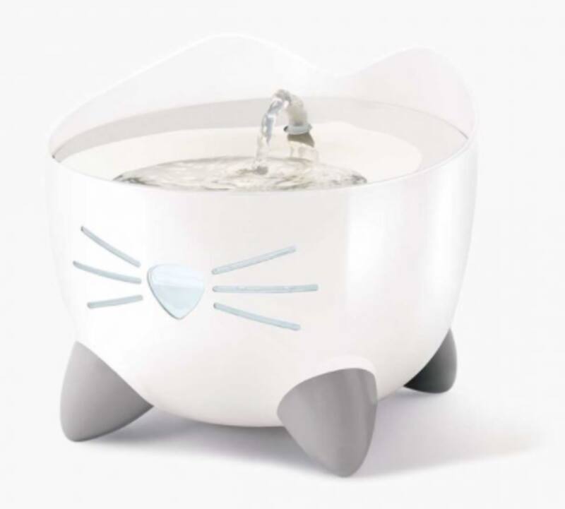 Carolina Corral sugiere el modelo Pixi, de la misma marca Catit. “Es una fuente que mantiene siempre el agua en movimiento, la filtra para evitar problemas renales en los gatos, se enciende de color rojo automáticamente cuando está vacía y avisa cuando se requiere el cambio de filtro”, describe con entusiasmo Corral. “Es ergonómica y estimula a los gatos a beber mas agua”.