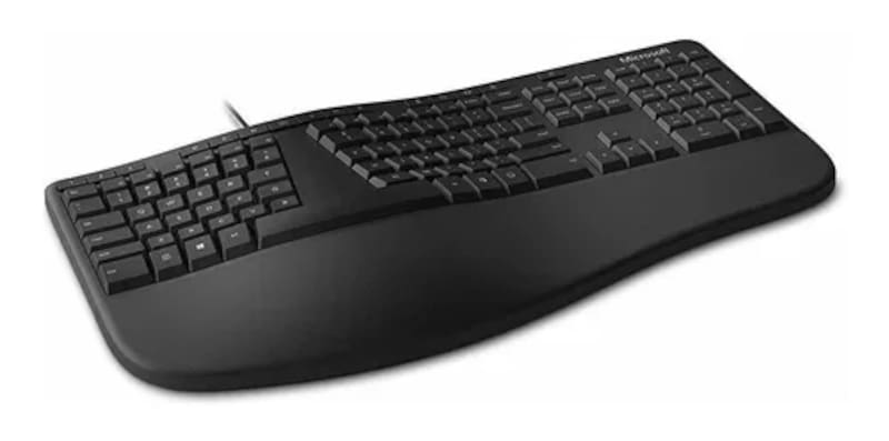 Como decíamos, hay teclados para todos los gustos y necesidades. Hay quienes buscan la ergonomía y el tecleo natural como principal característica. De los nuevos teclados, en ese sentido uno de los que más destacan es el Surface Ergonomic Keyboard, de Microsoft, una muy elegante herramienta de color gris, orientado a la productividad y que se adapta exactamente a los movimientos naturales de las manos. Está “partido” en dos y también viene con un amplio descanso para las muñecas y es muy silencioso.