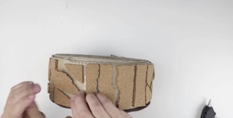 - Del pliego de corcho, corta varias placas para luego adherirla con silicona líquida o cola fría a las paredes del rascador y ¡voilá!