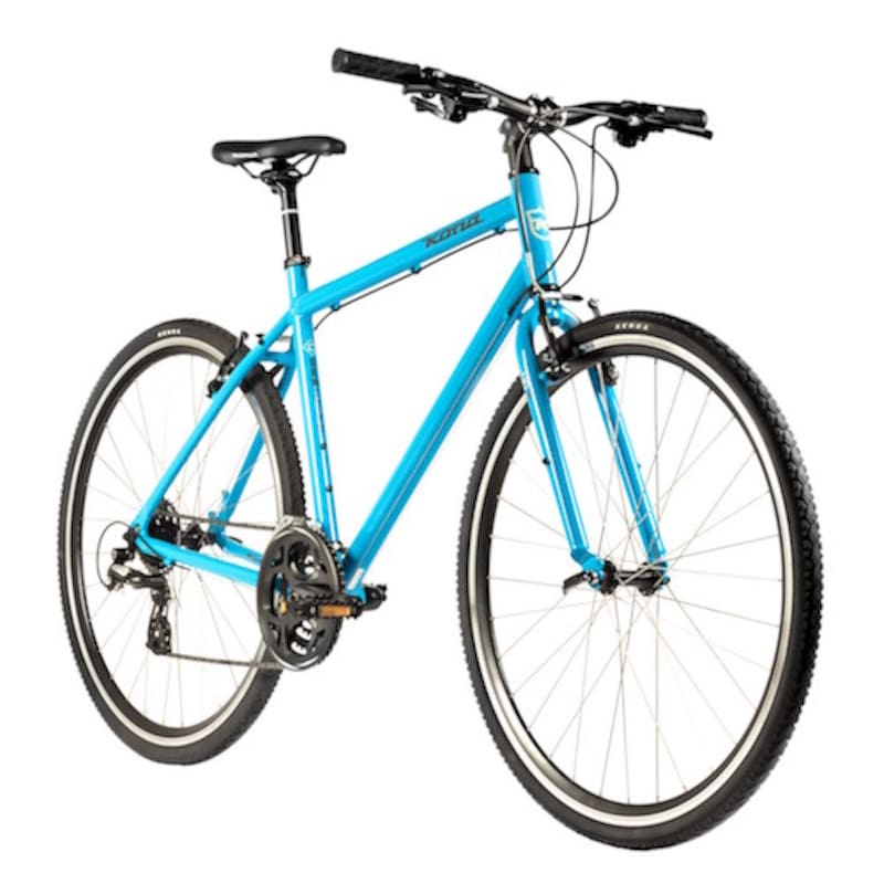 Un modelo urbano de Kona. Aunque es la más económica de la marca canadiense, su marco de aluminio y sus cambios y volante Shimano le dan mucha confiabilidad. Tiene frenos v-brake, 21 velocidades, y ruedas aro 28 de 55 cm de grosor.