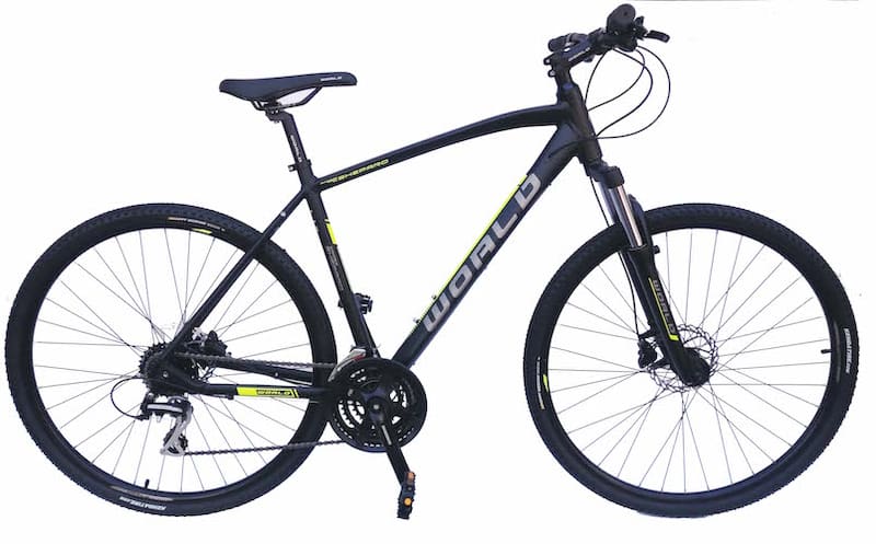 Con muchas más velocidades (24, con cambiador y piñón Shimano), frenos de disco hidráulicos también Shimano, al igual que el volante, y suspensión en la rueda delantera, este modelo World es mucho más potente y versátil, no solo para moverse por ciclovías sino también para subir una que otra pendiente.