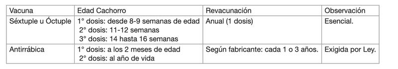 Las directrices de la WSAVA (la Asociación Mundial de Veterinarios de Pequeños Animales) y del COLMEVET (Colegio Médico Veterinario de Chile) coinciden en que el esquema de vacunación para cachorros debe ser el siguiente: