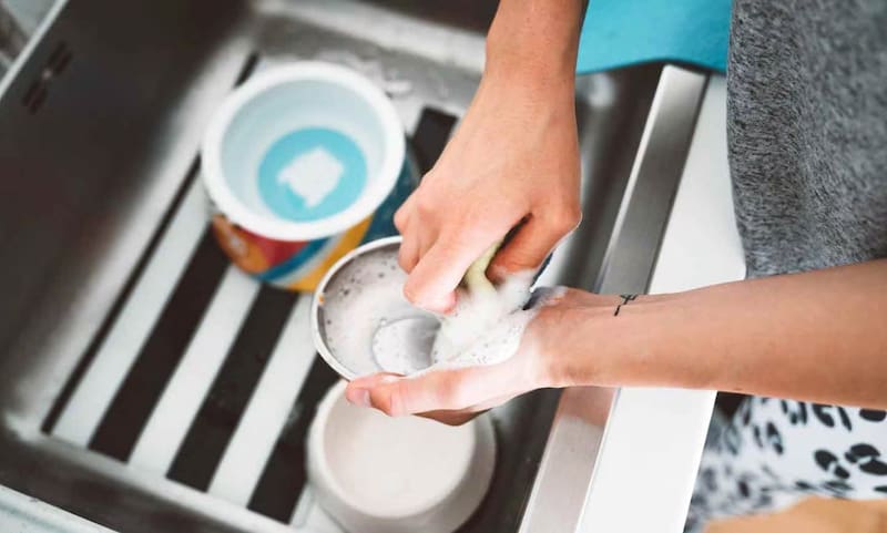 - Lavado con agua y detergente o jabón, utilizando esponja o cepillo exclusivo para esto.