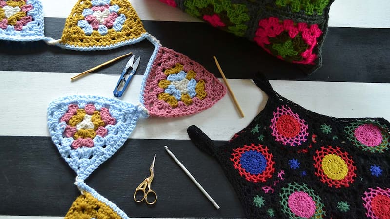 Patrones psicodélicos, coloridos, diferentes o llenos de personalidad: son algunas de las definiciones que mejor describen a los granny squares, concepto inglés que en español traducimos como “cuadrados de abuela”. “Se le llama así porque tradicionalmente se asocia el crochet con las clásicas mantas de abuela”, analiza Javiera Hernandez, fundadora de La Tejería, club y escuela de tejido. Para ella, cada cuadrado es como si fuese un píxel, y a través de él se pueden concebir millones de ideas, no solo de mantas o cobertores, sino que de prendas de ropa, como chalecos, shorts, vestidos e incluso bikinis.