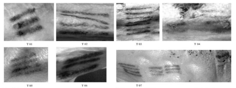 Pero además Ötzi tenía 61 tatuajes repartidos en su cuerpo, que los científicos atribuyen a un tratamiento médico para aliviar los dolores. Todos los tatuajes tienen formas geométricas muy claras y constan de líneas de 0,7 a 4 centímetros de largo.