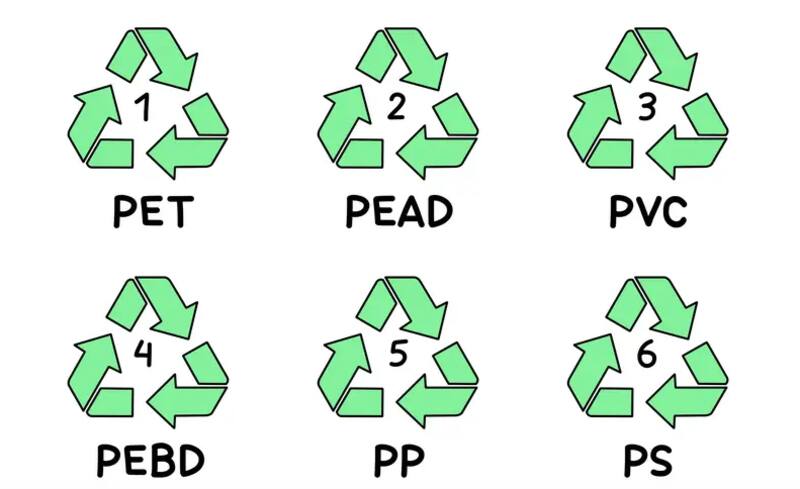 Los plásticos que se pueden reciclar son las botellas de bebidas, jugos, aguas y líquidos en general (PET (1)), los envases duros, usados para el champú u otros productos químicos domésticos (PEAD (2)), las bolsas y empaques (PEBD (4)), las tapas roscas de plástico, bombillas y envases no tan rígidos (PP (5)), el plumavit (PS 6), además de otros plásticos, que están categorizados con el número 7.