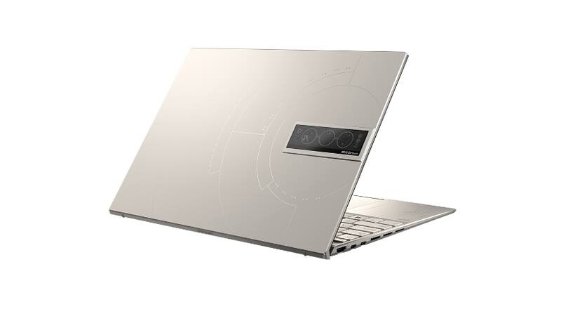 En la contratapa, además de algunas inscripciones basadas en la nave Voyager, hay una pequeña pantalla inteligente monocromática de 3.5 pulgadas, denominada ZenVision, y es una de las principales novedades que trae el Zenbook 14X OLED Space Edition. Sirve para mostrar cierta información —como la fecha, la hora y la cantidad de batería restante— o algún texto personalizado, entre otros detalles que ya veremos. Interesante.