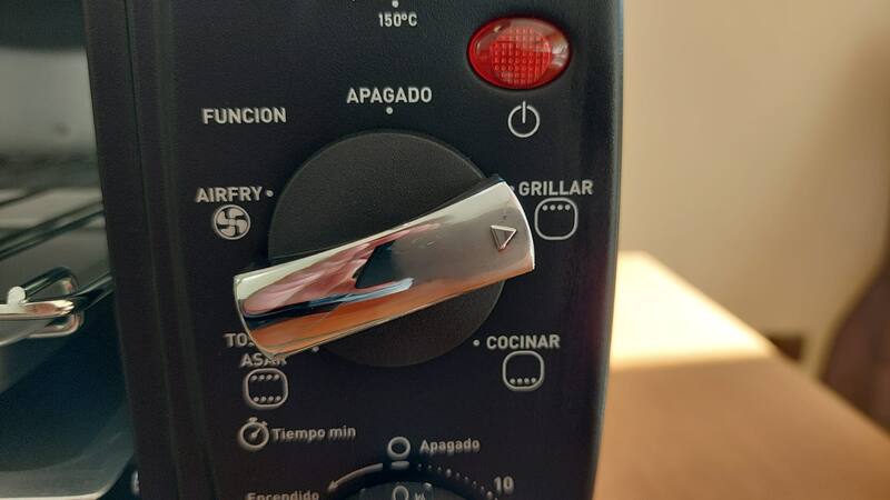 Probablemente el tamaño sea el gran pero de este horno. Como recién decíamos, es grande a la hora de querer guardarlo dentro de un mueble o despensa, pero por otro lado su interior muchas veces se hace pequeño y obliga a cocinar en varias tandas si se quiere alimentar a más de tres personas. Paradojas de la vida… y del diseño.