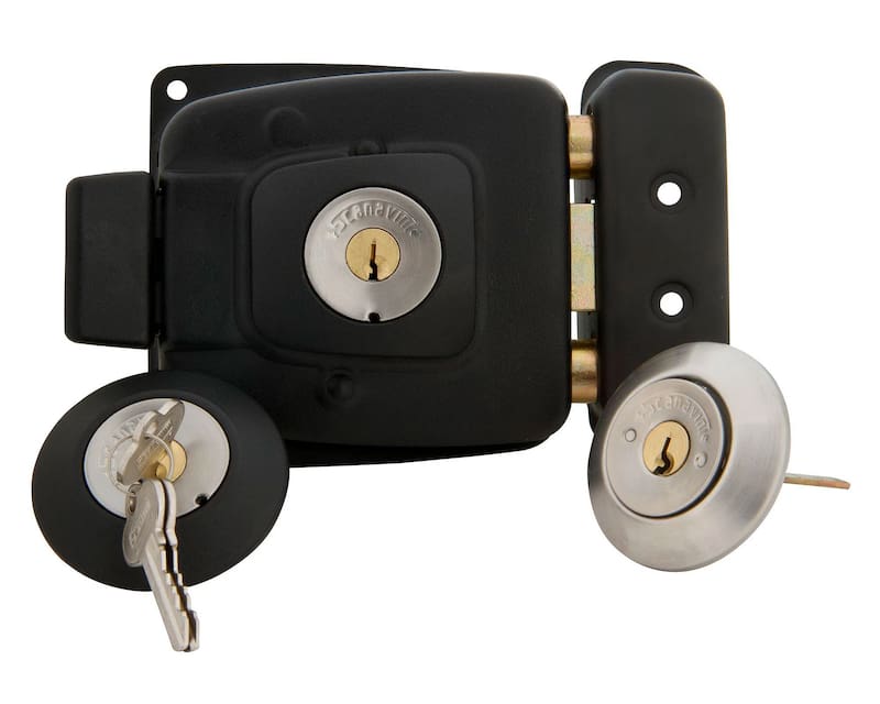La anterior cerradura Scanavini, por ejemplo, tiene un cerrojo de dos pitones y la llave da una triple vuelta. Es fácil de instalar y sirve para puertas de entrada o rejas de acceso.