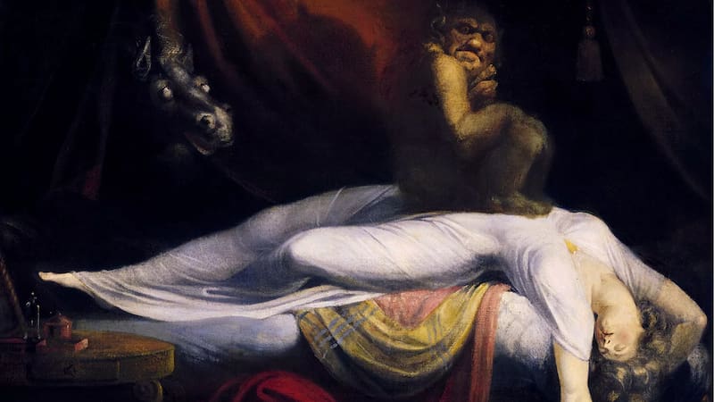 Más contemporánea, aunque igual de esotérica, es la representación que hizo el pintor y poeta suizo Johann Heinrich Füssli, también conocido como Henry Fuseli, a través de su cuadro más famoso, La pesadilla, de 1781: una mujer, tumbada sobre una cama, con un brazo y la cabeza colgando fuera del colchón, sobre cuyo cuerpo aparece sentado un incubo —la versión masculina de las súcubos—, mientras un caballo negro emerge desde atrás de unas cortinas rojas que decoran la lúgubre habitación.