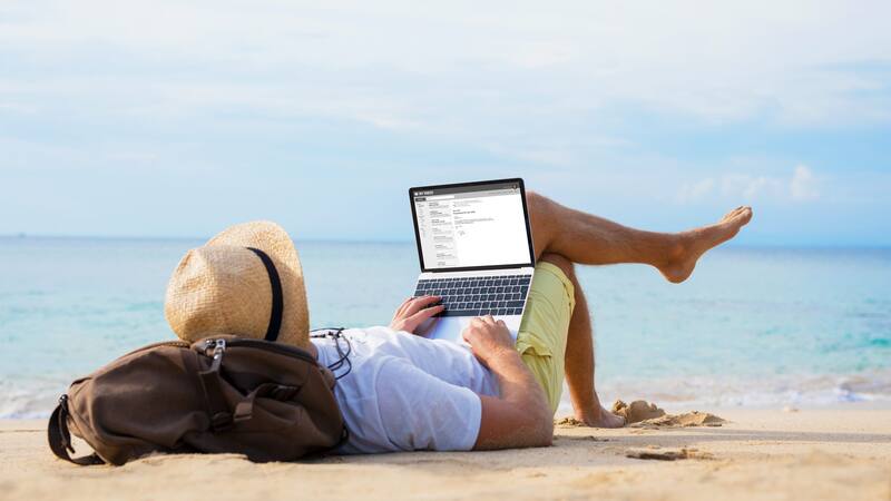 Porque no importa si no se está de vacaciones. Ahora puedes continuar haciendo tus tareas telemáticamente desde la montaña, el campo, la playa o donde sea. ¿Te lo imaginas? Tú, el mar, el notebook y unas mimosas bajo el abrazo del sol y la promesa de un retorno a casa portando el bronceado más fascinante de la urbe.