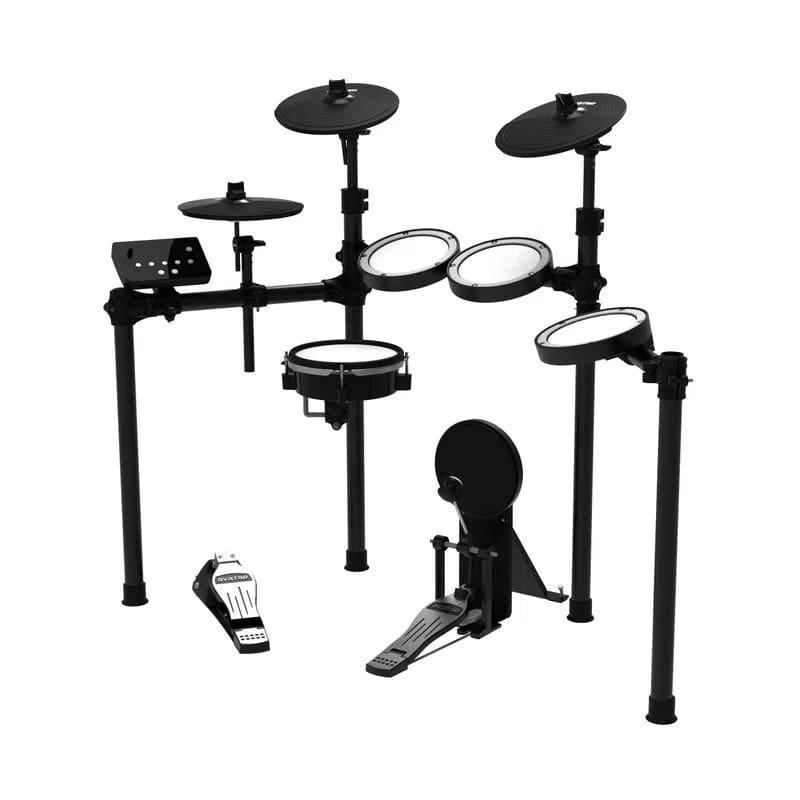 Asimismo, la mayoría de los modelos no incluyen pedal de bombo ni tampoco un pad de esta pieza, sino que traen un pedal con sensor en su propio soporte. Algo similar ocurre con el hi-hat: los modelos iniciales tienen el pad y un pedal, no así el atril.