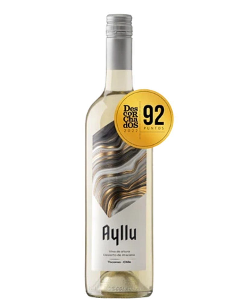 La viña Ayllu tiene como particularidad que está situada en pleno desierto de Atacama: específicamente en Toconao, cerca de San Pedro. Justamente en este árido lugar es donde se dan las uvas de moscatel de Alejandría y moscatel rosada, las que para producir este vino naranjo se mezclan en una proporción 90% y 10%, respectivamente. De rica acidez y con notas cítricas, pero también con toques salinos, es ideal para unos erizos frescos.