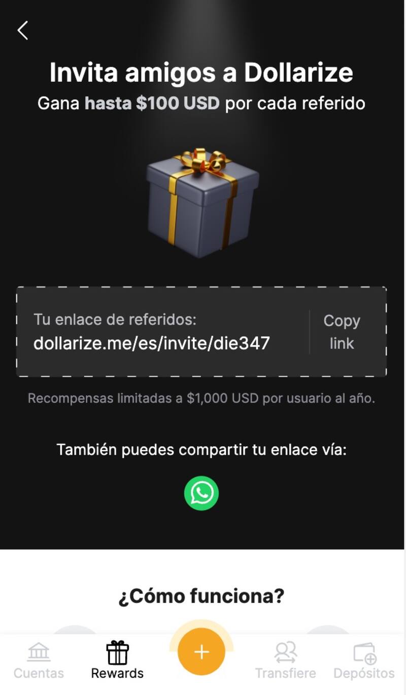 Dollarize no solo se queda en la apertura de una cuenta en dólares, sino que también permite que las personas realicen pagos internacionales entre clientes de Dollarize de forma gratuita e inmediata.