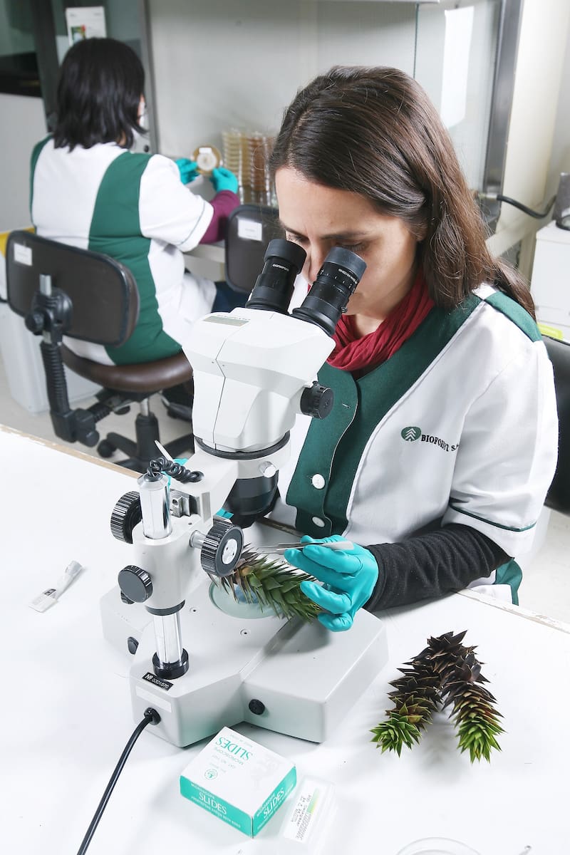 Fernández explica también que el vínculo y el trabajo con casas de estudio superiores se da a través de apoyo a trabajos de tesis y prácticas profesionales, y también cuando los investigadores de Bioforest cursan sus doctorados. “Lo cual no solo permite contar con profesionales altamente calificados, sino también mantener un contacto directo con universidades en Chile y el mundo”, precisa.