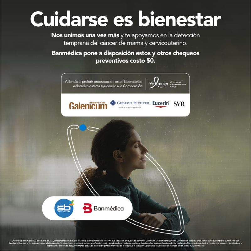 Porque cuidarse es bienestar, Salcobrand y Banmédica se unen nuevamente para la detección precoz del cáncer de mama y cervicouterino.