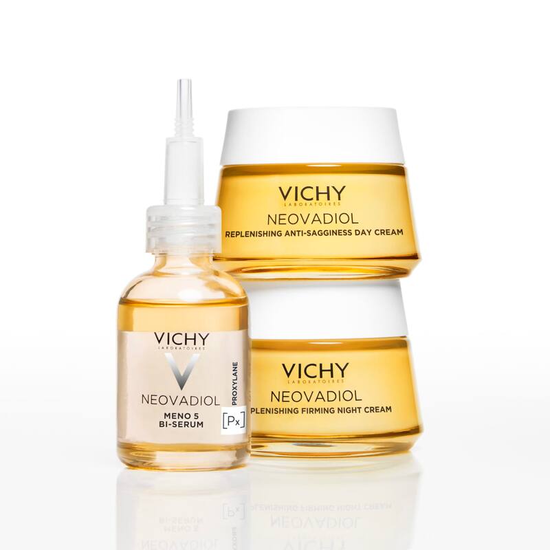 Vichy se ha centrado en el estudio del impacto de las hormonas en las distintas etapas de la vida, especialmente durante la menopausia. Por eso, en agosto de este año la firma relanzó Neovadiol, la gama de productos especialmente pensada en mujeres con menopausia.