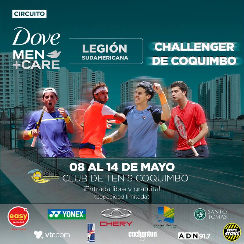Del 8 al 16 de mayo, las figuras más interesantes de la disciplina en el continente se reunirán en el Club de Tenis de Coquimbo para jugar el “Dove Men+Care Challenger Coquimbo”, evento ATP que entregará 80 puntos al campeón del cuadro de individuales, misma cifra para los vencedores en el torneo por duplas.