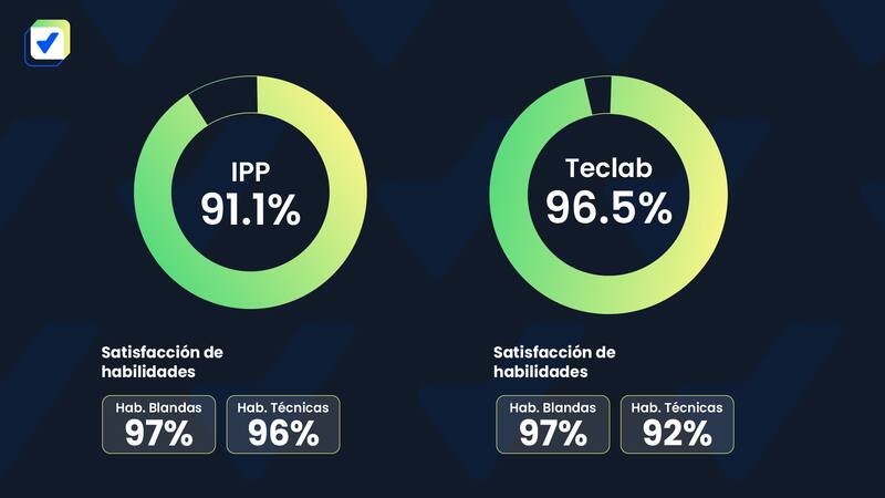 - 94 % de satisfacción en habilidades blandas: Se reconoce su capacidad para liderar, comunicarse efectivamente y adaptarse a distintos entornos laborales.