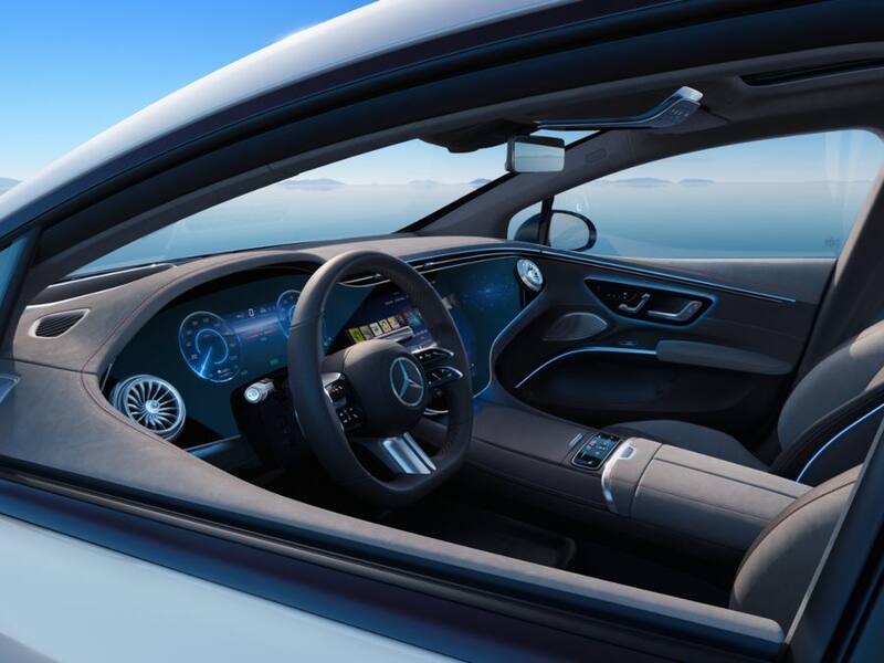 En su interior, el EQS ofrece sistemas de reconocimiento de voz, un tablero interior llamado “MBUX Hyperscreen”, que con su superficie curva 1,42 metros extiende los controles de los diferentes sistemas del vehículo con entretención, GPS y tres pantallas OLED de alta resolución que se fusionan visualmente en una sola.