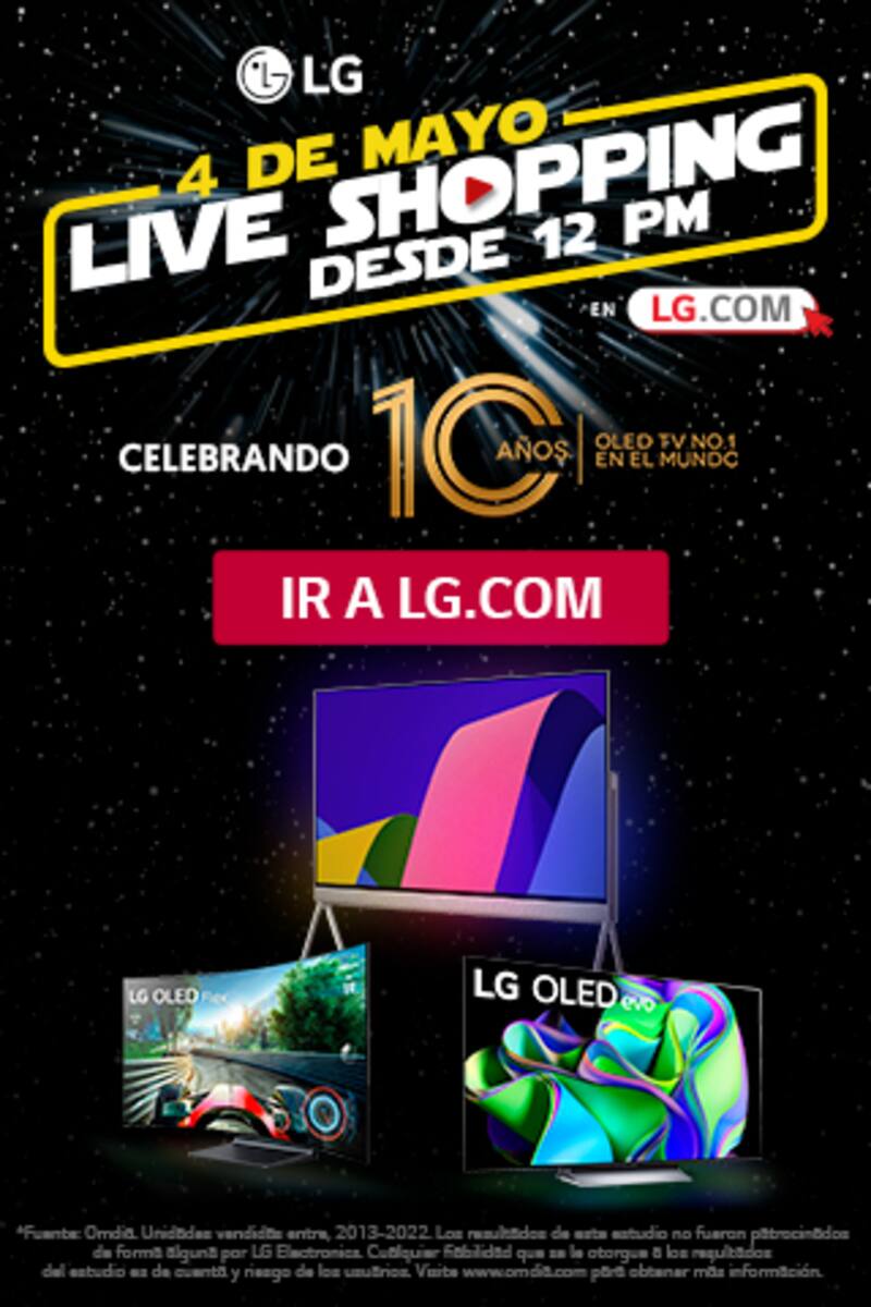 Este jueves 04 de mayo al mediodía, LG Electronics realizará un live shopping especial con increíbles descuentos en productos de electrónica. Destacan equipos de audio y televisores con tecnología OLED en sus modelos Flex, EVO entre otros, para conmemorar la celebración de su décimo aniversario.