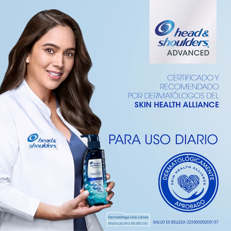 “Head & Shoulders Advanced trae una tecnología patentada (3) para controlar la caspa persistente (1) y la picazón (4) asociada a la caspa y al mismo tiempo, cuidar del cabello: cuenta con micro-partículas hidratantes que cubren toda la hebra de cabello para dejarlo saludable y hermoso”, dice la Dermatóloga Dra. Lina Llanos(6).