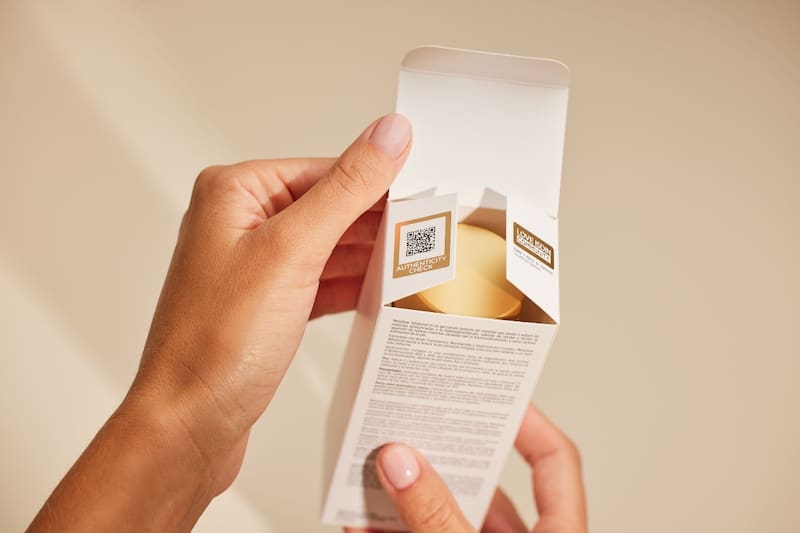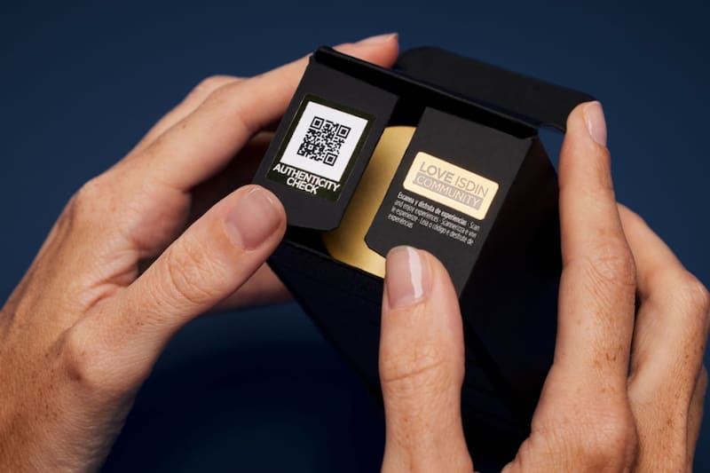 1. Escanea con tu celular el código QR que encontrarás en el interior de la solapa superior (si tu producto viene en caja) o en un adhesivo lateral identificado con el sello LOVE ISDIN.