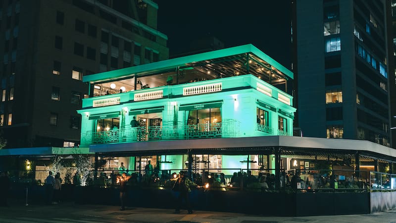 Fue una convocatoria que superó las 600 personas, transformando los tres niveles del recinto en un escenario vivo de celebración. Quienes asistieron esa noche no se encontraron solo con un restaurante, sino con una experiencia inmersiva. La arquitectura patrimonial de la casona, cuidadosamente recuperada por el Grupo VCH, se vistió de gala: la fachada y los interiores fueron bañados por los colores de Lumiere…., subrayando ese diálogo entre el pasado recuperado y el presente activo que ha convertido a Lumière en un lugar de encuentro para vecinos de Las Condes y ejecutivos del sector financiero.