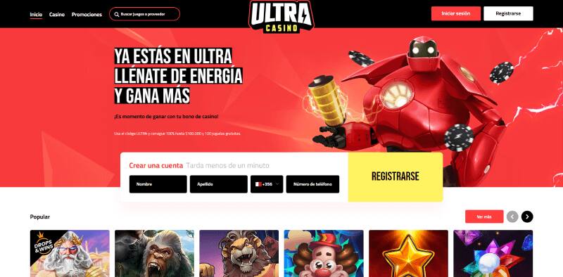 ● Ultra Casino – Recibe una bonificación de bienvenida tras registro que te otorga el 100% de tu primer depósito hasta CLP $100.000 y 100 giros gratis.