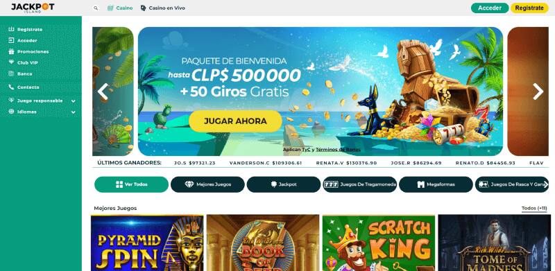● Jackpot Island – Recibe un bono cuádruple de bienvenida hasta un máximo de CLP $500.000 por tus primeros cuatro depósitos.