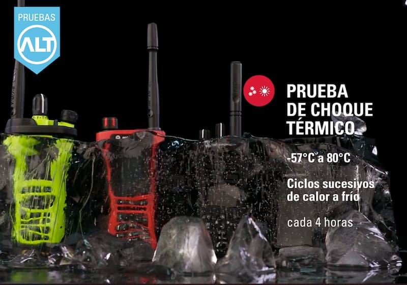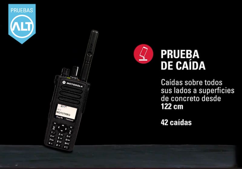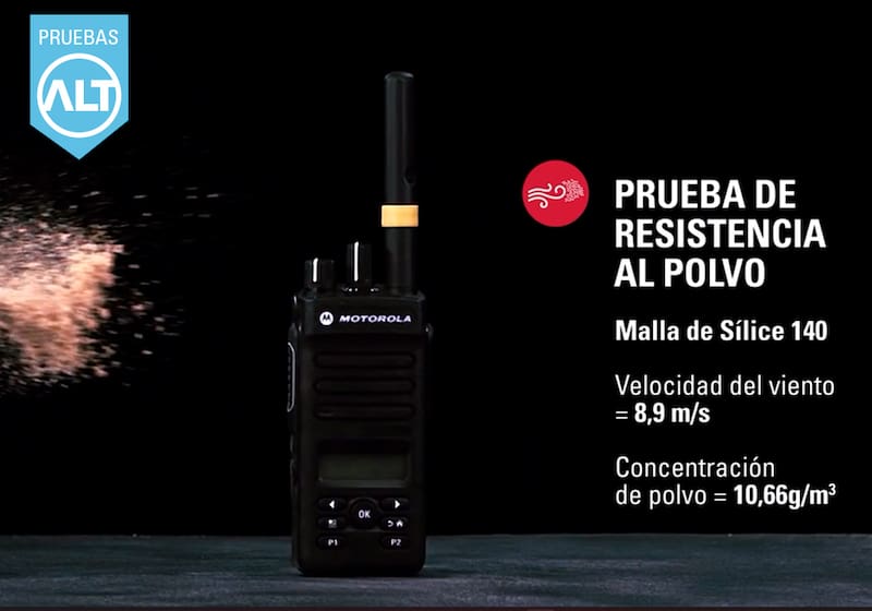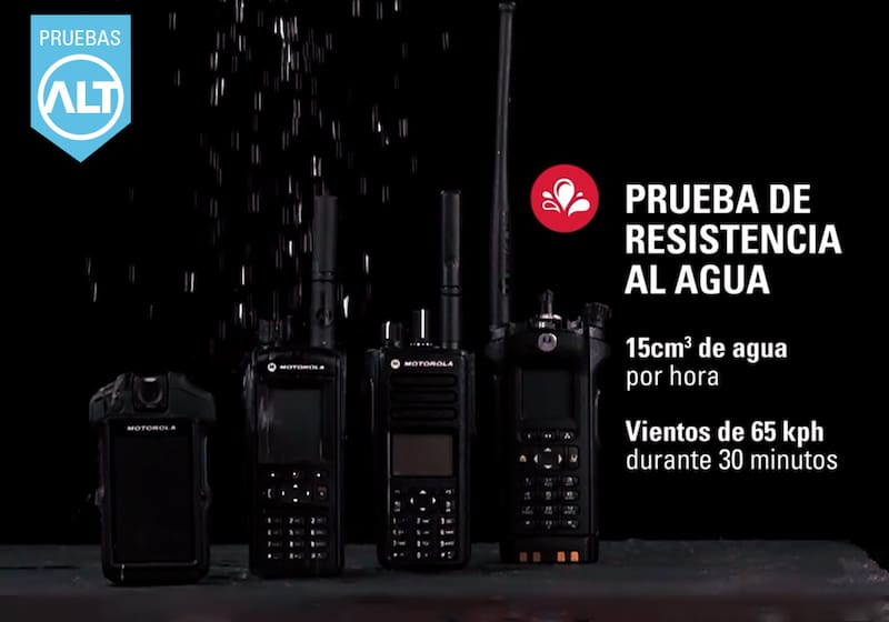 Motorola Solutions afirma que todos sus productos pasan por un estricto testeo conocido como Pruebas ALT. Este proceso consiste en la simulación de cinco años de uso intensivo, donde se corrobora que los equipos sí fueron diseñados y fabricados para soportar los golpes, las sacudidas y las caídas que experimentarán durante su vida útil.