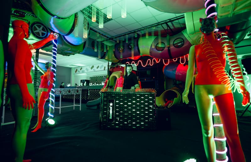 En un lugar secreto revelado solo horas antes del inicio, los 400 asistentes fueron testigos de una noche diferente en el icónico y nunca esperado Chuck e Cheese, donde la música, el arte y la danza se fusionaron en una experiencia muy ecléctica.