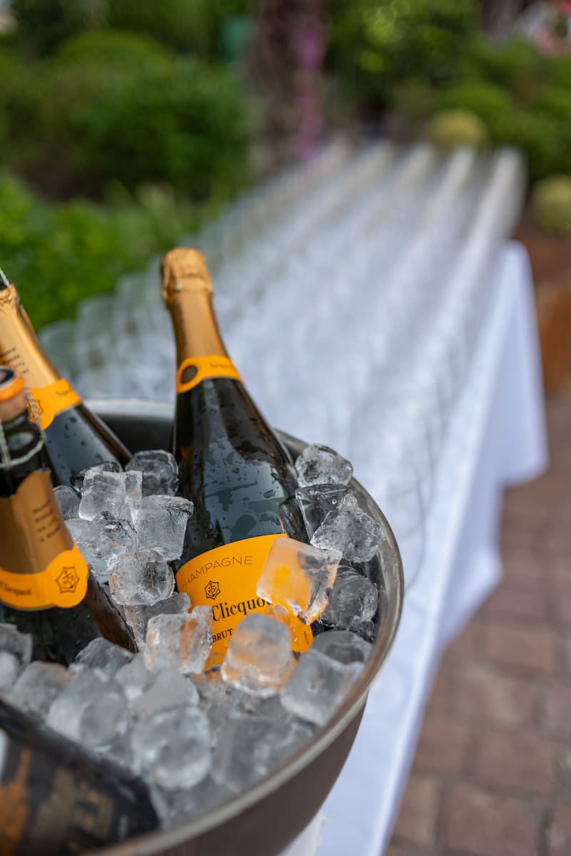 La experiencia comienza con delicadas preparaciones de bienvenida, acompañadas por Champagne Veuve Clicquot Yellow Label Brut, dando paso a un recorrido que equilibra sabores de mar y tierra. Entre los platos destacados se encuentran el dim sum de pato con salsa ponzu y hondashi, el salmón envuelto en hojaldre con hongos y beurre blanc de cítricos, y un refinado wagyu estilo Rossini con foie gras, papas nativas y demi-glace, protagonista indiscutido de la velada. El cierre dulce, con texturas de chocolate guanaja, violetas y cerezas, vuelve a dialogar con el champagne, completando una experiencia sofisticada y sensorial.