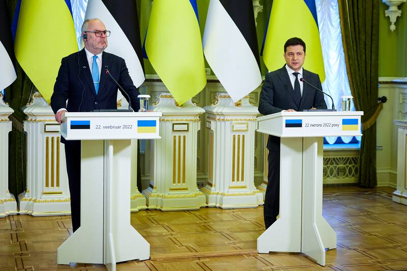 “Ucrania debe reaccionar ante esto, defendiendo su soberanía y su condición de Estado”, sostuvo Zelensky en una conferencia de prensa el martes con el presidente de Estonia, en la que pidió a Occidente que castigue inmediatamente a Rusia con sanciones. Dijo que decidiría sobre la propuesta de su Ministerio de Relaciones Exteriores de cortar los lazos con Moscú más tarde este martes.