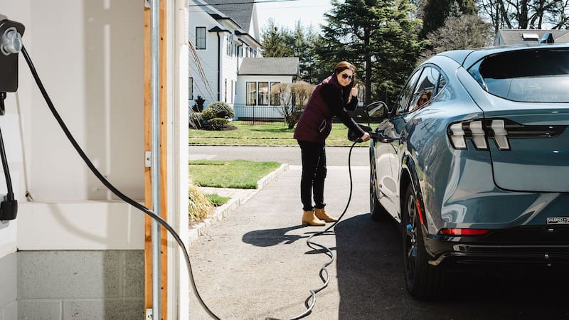 Claro, puedes enchufar tu auto a una toma de corriente normal de 120 voltios (algunos autos vienen con un cable). Y claro, también puedes ver simultáneamente todo Netflix mientras se carga. Tardaría más de dos días en llenar la batería de 466 kilómetros de mi Ford Mustang Mach-E mediante un enchufe estándar, lo que se conoce como carga de Nivel 1.