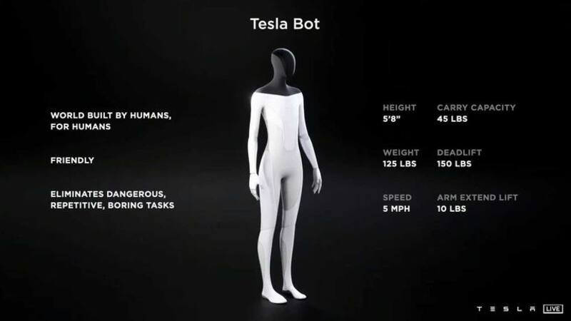 El Tesla Bot, cuyo prototipo debería estar disponible el próximo año, está diseñado para eliminar “tareas peligrosas, repetitivas y aburridas”, como agacharse para recoger algo o ir a la tienda a comprar comestibles, dijo Musk. “Esencialmente, en el futuro, el trabajo físico será una elección”, asegura.
