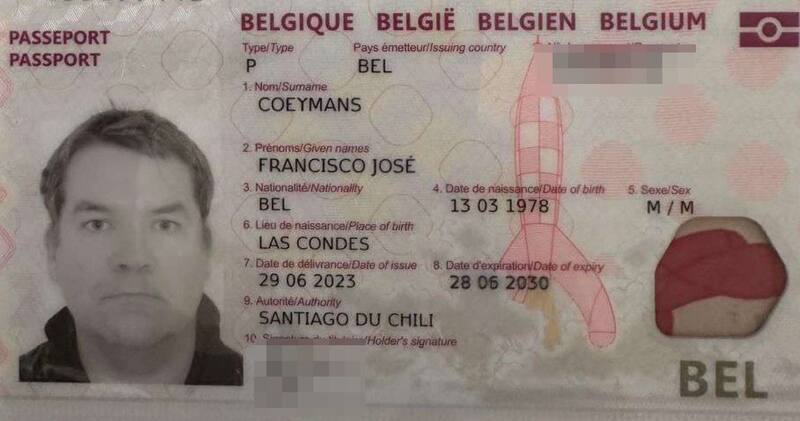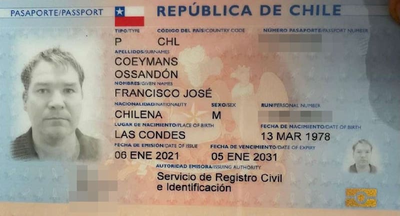 Francisco Coeymans cuenta con dos pasaportes, uno chileno y otro belga. “No sabemos cómo pudo ingresar. Con un certificado Covid, debería estar con cuarentena, pero se le ha visto transitando, yendo a restaurantes, haciendo una vida de lo más normal. Esto demuestra que ha sido una estrategia para evitar enfrentar la justicia”, dice el coronel Franco Moreno Panta.