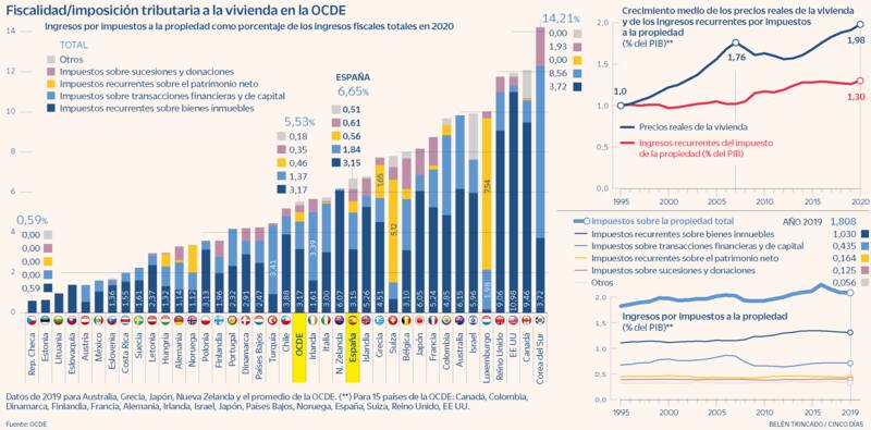 Chile y España , según los datos del informe, se sitúa en unos parámetros similares a la media de la OCDE en cuanto a la imposición patrimonial.