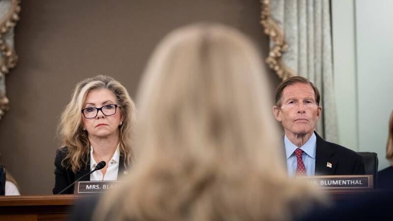 Los senadores Blumenthal y Blackburn hablaron durante el lanzamiento de las recomendaciones de la comisión el miércoles, junto con otros legisladores que han presionado por una regulación tecnológica más dura.